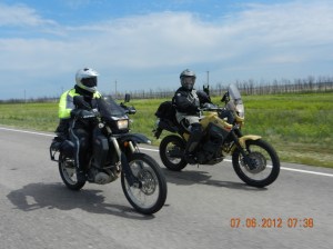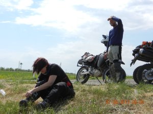 We’ve encounters cops almost once every day but it was not too bad until 2 days out of Almaty then we went though countless speed traps and it really got on our nerves. The cops sit about 3km after the road works speed signed on the motorway. The speed is 50km/hr on the most beautiful long flat perfect motorway, go figure I guess they need to stock up on new police cars so are out in force making money. Cesar eventually found a while van that was speeding along like crazy and just sat behind that figuring that he would get caught. However it seems that he was on some radio to other folks as every now and again he would really slow down and a few ks later we’d see the cops… Thanks while van man 🙂