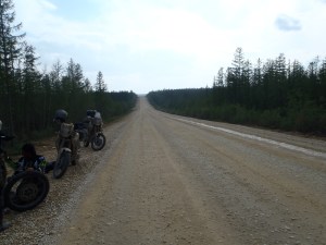 So off we headed to Yakutsk 1000km away. 350km later we stopped and camped for a final time as a group. The next day saw us on the M59 for 650km a KILLER and absolute killer we got on the road at 7am had a couple of very very short stops for lunch, to get some water, a couple of pee breaks (I’ve never peed so quick in my life but we really were pushed for time) and a front tyre puncture. We really pushed it that day and after 16 hours finally got into Yakutsk. This is where we (Phil also ended his trip here) said goodbye to the other guys. I was so down at this point after the news about Angie, saying goodbye to Cesar ending the Russian part of the KUDE expedition and now having to say goodbye to the rest of the team. I just cried and cried and fortunately Gareth has big shoulders and let me use them to cry on he is a great great friend and I miss so very much.