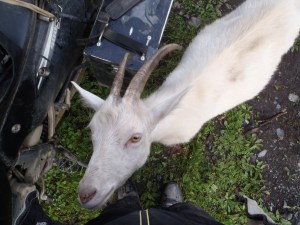 I actually met the goat she kept me company while I packed up my bike and then ate all my almonds. She then stood on her hind legs putting her front legs on my stomach looked me in the eye and said “are you sure those are all your almonds lady” OK I haven’t quite lost it she didn’t talk but I can tell you that was the exact expression on her face. I polity told her I had no almonds and before she got angry rode away.