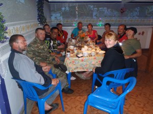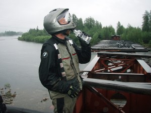 Getting back to the bad BAM story, one of the best things about the trip is the group that I am riding with. This is team work at its best not only while getting over broken bridges and through rivers but camping and keeping the spirits up. Every time a rider got stuck two or three other riders would be off their bikes and rushing to help before one could say mayday, often wading into knee deep freezing water. I would have to comment that most of the time that was Gareth and Craig, but no one in the team spent the BAM watching from the sidelines everyone chipped in and did their bit. I know companies send their employees on team building days and now I just want to laugh every time I think of one of those ridiculous events. Until you are lying upside down in a pile of dirt half way up a steep incline underneath a bike you have no idea what team work really means. It took three of the guys to get my bike up the bank after I fell and the 4 to get push and pull Phil’s bike (a lot heavier than my baby) up the incline while I road it. If corporate companies sent their employees to the BAM they would soon weed out the slackers 🙂