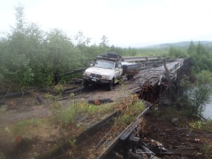 The real difficulties on the BAM are the river and bridge crossings. Since we chose to come during one of the worst wettest summers experienced in this region the roads are at their worst and some rivers just impassable. This meant we needed to use the railway bridges to cross them. Many of the road bridges were in a rather bad state of repair, but passable and the second largest one in the Kaunda just nonexistent having burned down a few months earlier. This would not have been a problem if a bridge guard had not been posted to ensure no vehicles used the railway bridge. This man was not going to budge and there was no way to cross the bridge. This meant a 50km return trip to the town on Kaunda where we had to board a train, I will explain this saga later.