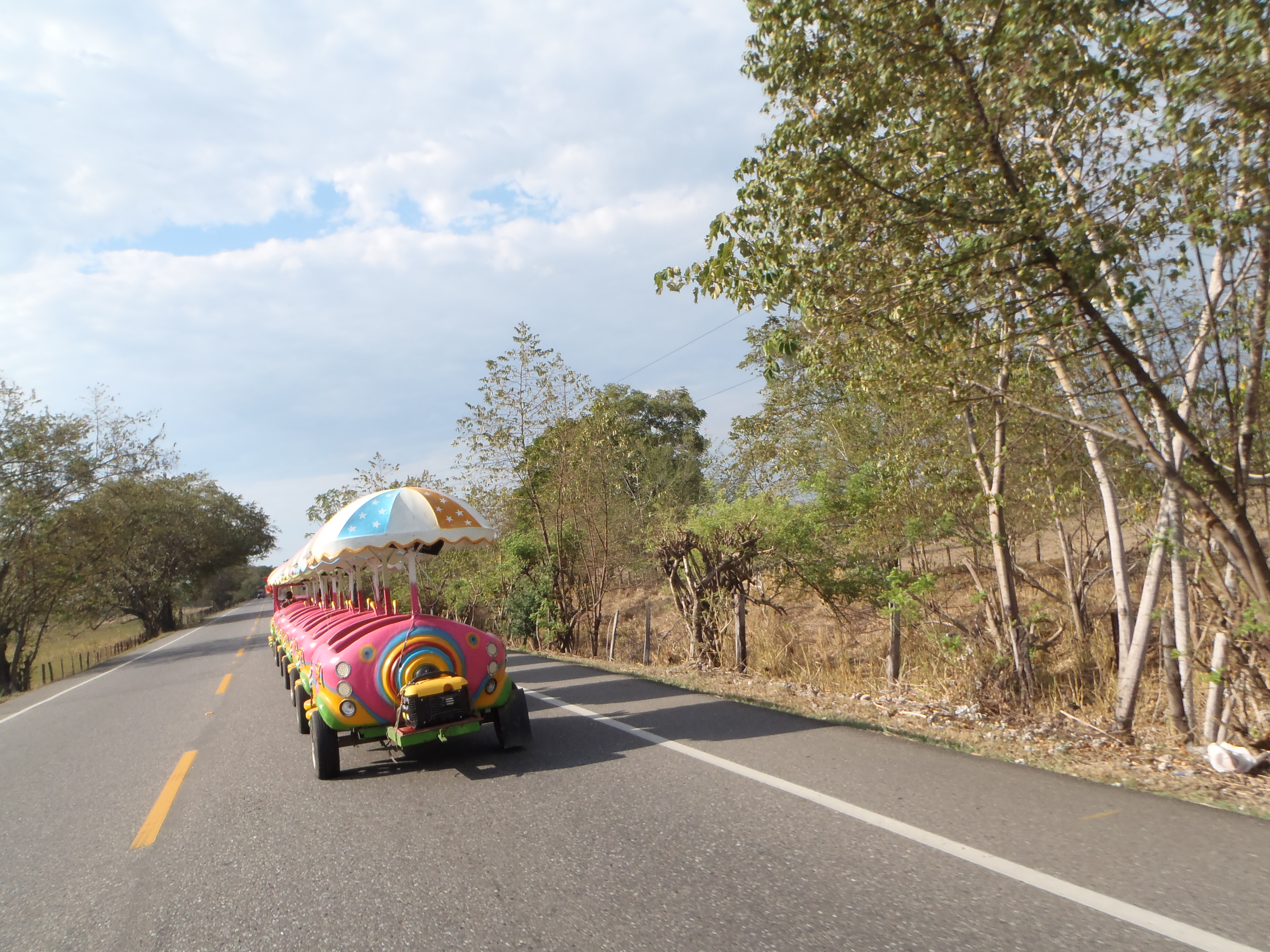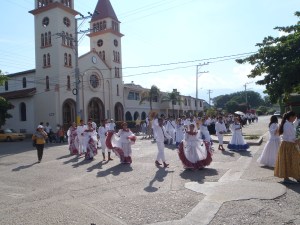 I have no idea what the parade was about but it seemed to have something to do with school kids as they were part of the parade, perhaps it was the first day of school parade. No matter what is was it was a lovely sight to see while riding out of Puerto Salgar.