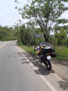 The road out of town and half the way to Guatape is a perfect motorway. This was great just what I needed the feeling that I was really getting somewhere. The other half of the road was very twisty mountain passes however this time with far far fewer trucks, so I really got to enjoy myself. I enjoyed every bit of the ride to Guadape and the scenery got even better as did the quaint little roadside cafes. I enjoyed making conversion with the really friendly café owner where I stopped for a coke, she spoke all of 2 words of English but that plus my 3 words of Spanish worked wonders. I’m back, the adventure biker is finally back, this is what I love doing. Just me and my bike against the road, watching the world as we pass by riding through roads that are enclosed by tall trees smelling the earthy smell of damp forest floor or road kill whatever comes first. There was one stretch of road where I spotted 5 dead dogs in about 2kms and smelt a whole lot more, I don’t think Colombian dogs have learned the rules of the road. There are however enough buzzards to make short work of them. I saw hundreds circling overhead all over and thought, well at least if I died on this road my body will go to feed something not a wholly unpleasant thought. but on a more wholesome note I did see some strange things on the road …
