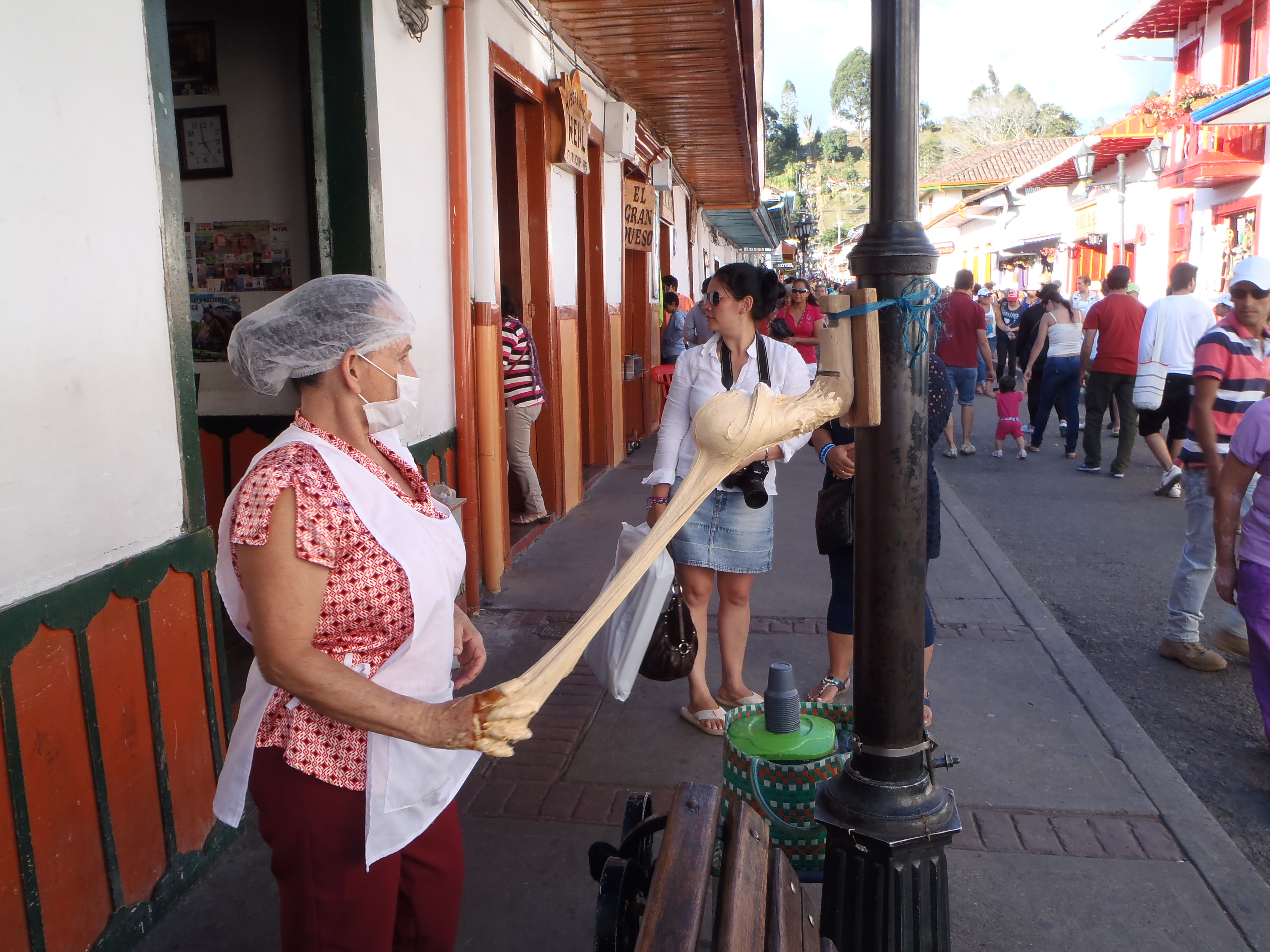 This lady is making a caramel sweet similar to marshmallow, quite tasty but SWEET