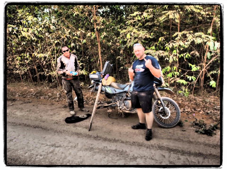 Day 2 on the dirt: 680kms, I have to say I do think this was bad planning as no one knew in advance what the road would-be like except that it is a dirt road. We were really lucky as it was in very good condition and most of it had been freshly graded, plus there seemed to be far fewer trucks. It there had been rain it would have been one big mud bath. I think planning a 680km day on dirt is not very good. As bad luck would have it this was the day we’d have multiple issues.