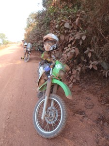 Day 1 on the dirt: 450kms, Gadget and I took off like the devil himself was behind us. Sand, ruts, corrugations and potholes we did this wonderful dirt dance around them and tried to miss (unsuccessfully) as many as possible. The only thing that wasn’t great were the trucks, they bulleted down these roads swerving to miss the big potholes and not giving a damn who or what was in the way, we had quite a few near misses. Riding behind them was impossible as the dust was so thick you were completely blinded. I have experienced a lot of dist riding / driving but this is crazy you literally cannot see a thing not the sky above or the road below. It is truly scary. The only option was to pass but that was a challenge in itself. I was at one point behind this truck racing at phenomenal speed (for a huge truck) causing masses of thick yellow dust to billow out behind it. I realised that I must pass this truck since even if I dropped back out of the dust I’d be stuck behind it all day. So I tried to go left to see if I could see past it. Next minute I heard him slam on breaks and skid along the gravel (no break lights) the next second there was a truck inches from gadgets front wheel, I swerved right slammed on breaks locked the back wheel and went sliding all the way along the whole length of the truck to end up millimetres from a bridge rail. My heart stooped, phew that was far far too close for comfort. Fortunately since the damn truck slammed on brakes for the bridge, my guess is the driver was sleeping and did not see it earlier, I could at least think quickly and get past him after the bridge before he sped up again.