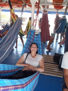 The ferry ride was uneventful even boring, we had 3 cabins supplied with free cockroaches and plenty of them (6 beds, for the 4 ladies and Rob & Pete the 2 injured riders) and the rest of the group stayed in hammocks on the deck. We mostly just slept, ate and chatted. Except for Rand, Rob and Pete who had a cigar and rum party in the one cabin. I joined them for a few hours and spend the night highly entertained by these 3 funny guys, you had to be there but trust me it was one of the most fun evenings I had on the trip. The following day after zero sleep in my cabin as the captain had his music blaring full ball all night. I sleep with very good ear plugs as am very sensitive to noise at night and could not sleep a wink with this cacophony and Jules would not close the cabin door as she said she needed the fresh air, but would not put the cabin aircon on instead as it was then too cold. How she slept through that noise is beyond me, but let’s just say I woke up in a less favourable mood. I tried to sleep later that morning but to no avail so just gave up, at least I don’t need to get off the ferry onto a bike so I’ll live.