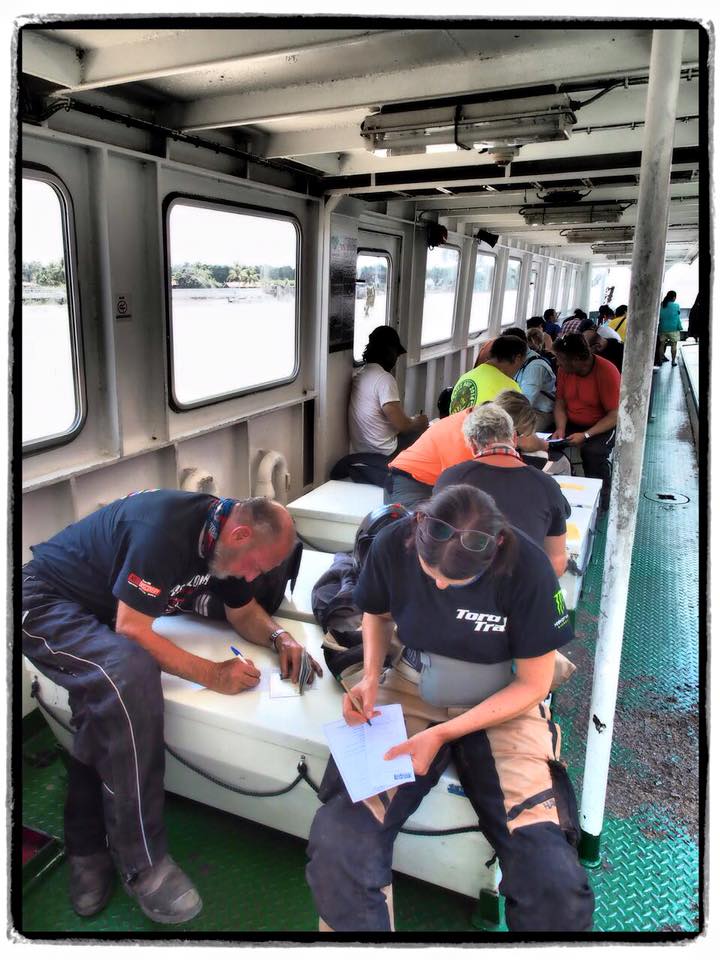 on the ferry filling out yet more customs forms