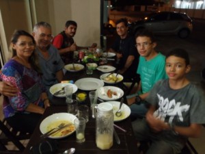 Rubem took me back to his house to meet his wife Cristina and two boys Yuri and Yvan. He took us all out to dinner but not before going past the school where Cristina is the principle and fixing a plumbing problem. Rubem Amazonian Rambo (as his friends call him) man of many talents from fixing toilets to helping bikers to flying helicopters for the police. We had a fantastic dinner and it was just a pleasure to spend time with Rubem and his family. I also got to meet another two of his biking buddies Clesio and Gilson, what a nice evening and I can honestly not speaking Portuguese does not mean you have any less fun 🙂
