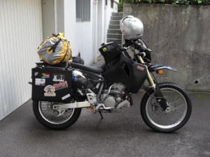 I had packed the panniers on the bike last night so it was just a case of the tank bag, waterproof bag on the back and me so all packed up I climbed up on the Dizzy …hmm and I tried again and nope I did not fit…no seriously I could not fit on my own bike between the tiny tank bag (yes it is the mini one, but full to capacity) and the rolled up sleeping bag and mat and the waterproof bag there was no space for me. Quick repack, the sleeping roll is now tied to the pannier phew so at least I could eventually get on the bike now to fill up and hit the road.