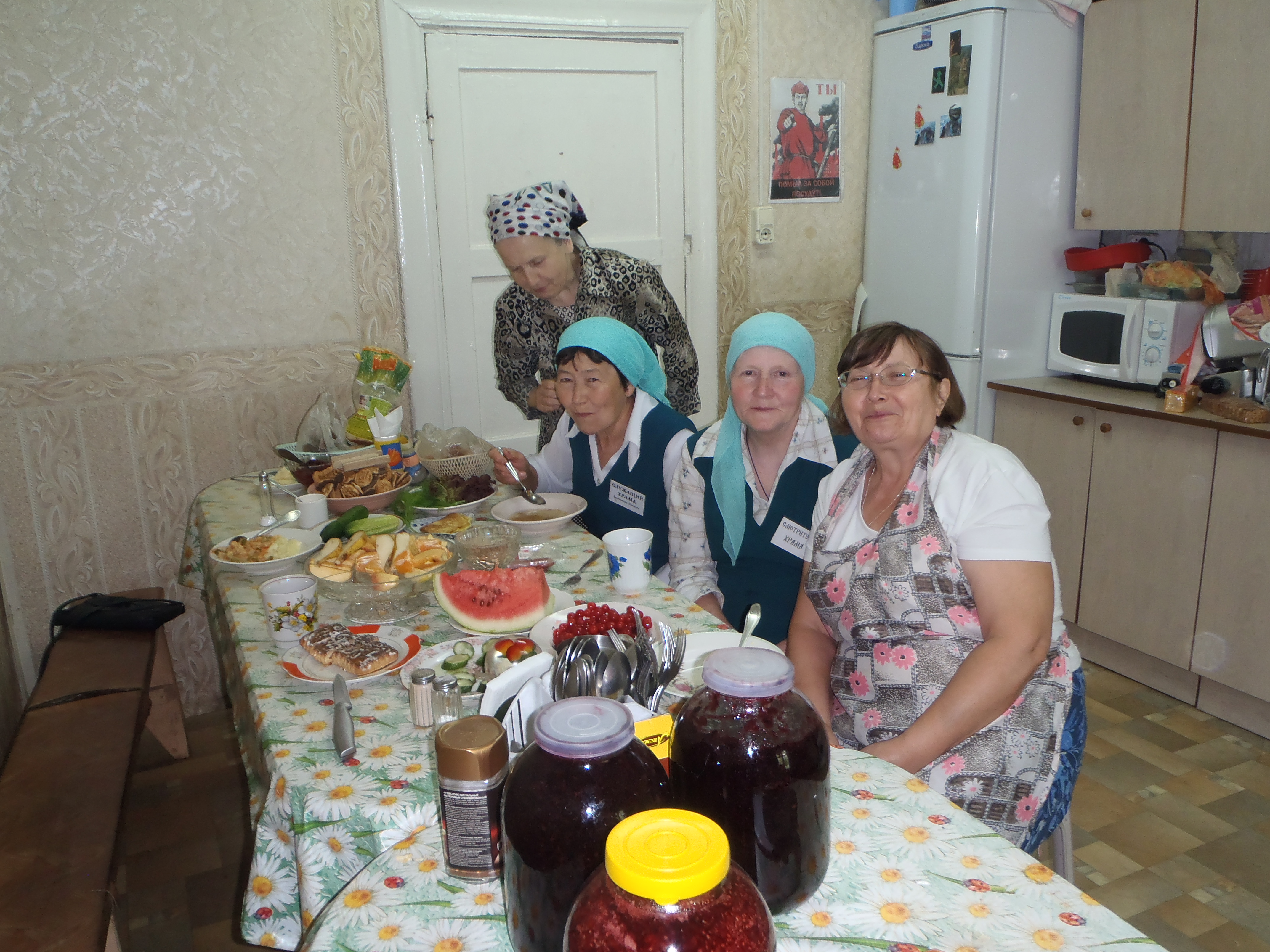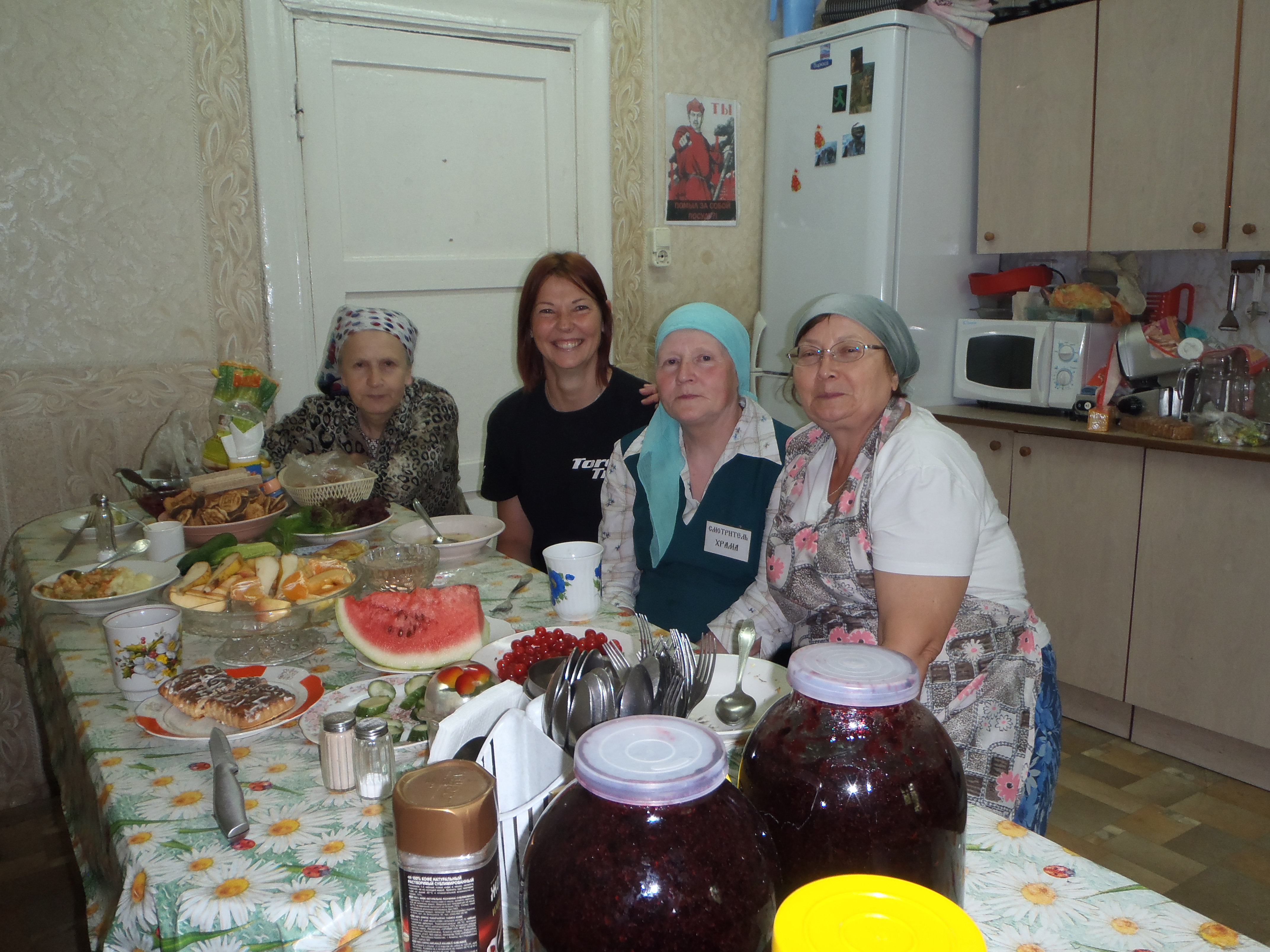 My favorite ladies, in the church: Olga, Alexandria, Maria and Masha, feeding me as usual.