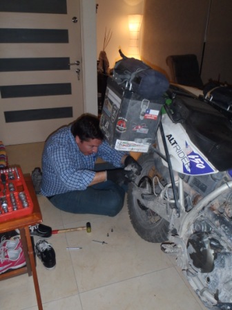 Daniel also spoilt me by doing a service on my bike … in the living room. His sports bike lives in the living room, and when he does any work on bikes it is in the house. I was quite shocked but also amused, I think Aline is amazing to allow that.