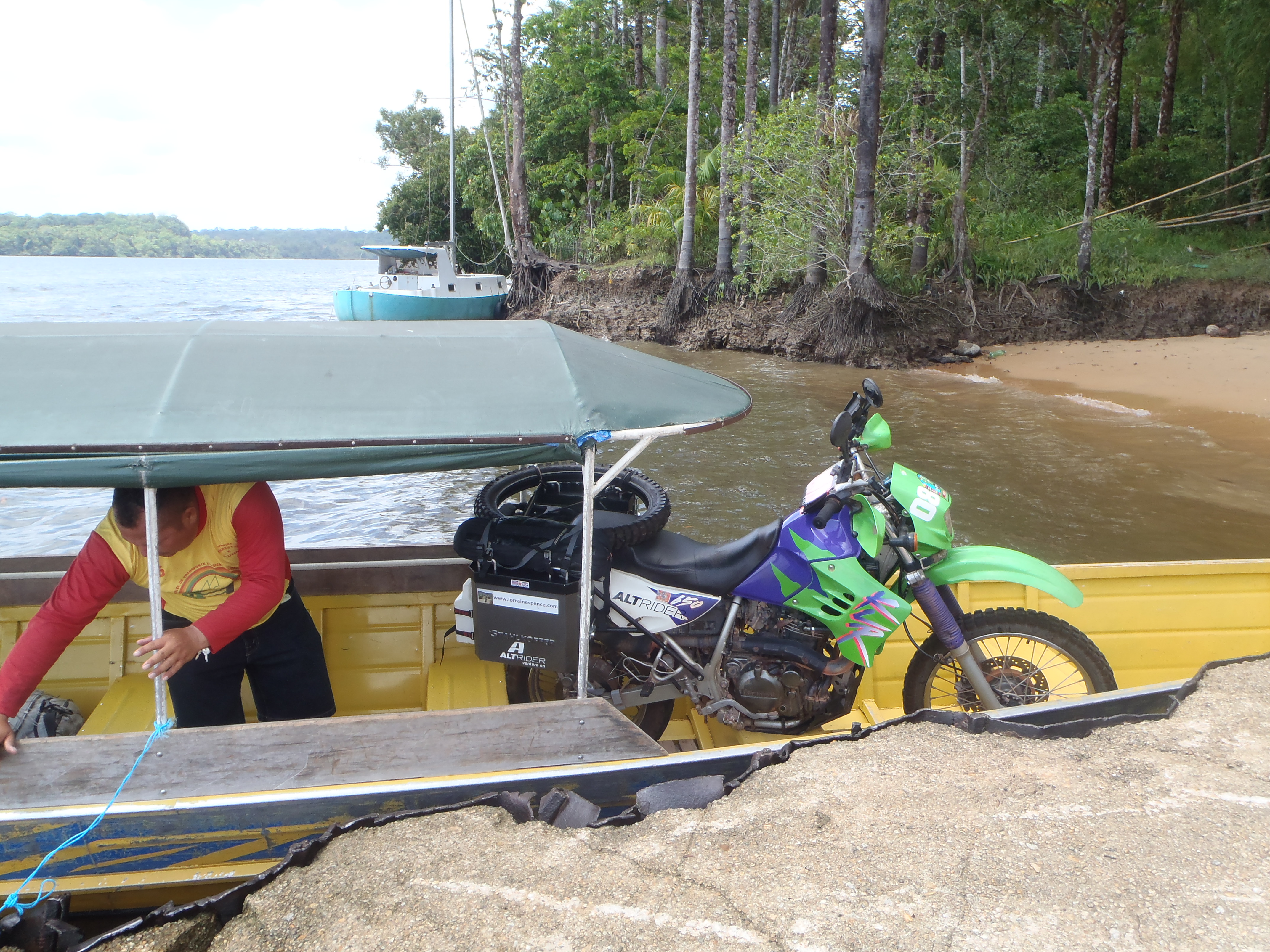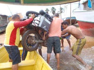 After turning green on the ferry we finally made it to Belem in 26 hours 😦 but boy was it good to hit firm dry land again. However not after having to get the bikes from our ferry onto another ferry and then onto dry land. I almost couldn’t watch the proceedings as the bikes we walked across the most bendy thinnest planks with no support except 3 of the crew members I was in a panic but I guess these guys do this all the time so neither of the bikes landed up in the river.