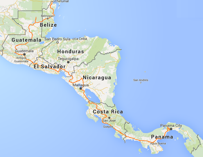 North America: Panama, Costa Rica, Nicaragua, Honduras, El Salvador, Guatemala, Belize, Mexico, USA